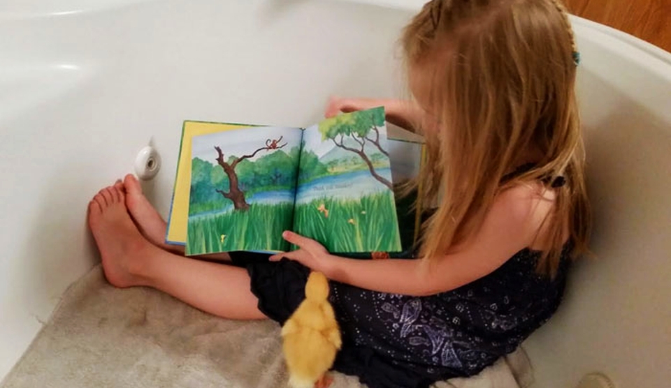Kylie Brown are numai 5 ani, dar e deja mamă, cel puţin pentru această raţă, care o urmăreşte peste tot.