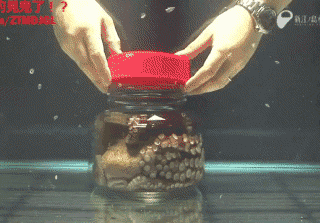 În mediile de cercetare, caracatiţele pot naviga în labirinturi şi rezolva puzzle-uri cu relativă uşurinţă. Ele sunt renumite pentru faptul că pot evada din diverse prinsori, precum un borcan, după cum puteţi vedea în imaginea de mai jos.