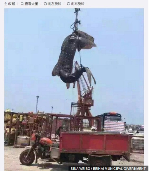 China este cunoscută pentru vânătoarea şi comercializarea rechinilor-balenă. Aceste creaturi sunt considerate vulnerabile de către Uniunea Internaţională pentru Conservarea Naturii, organizaţie care stabileşte starea de conservare a animalelor.