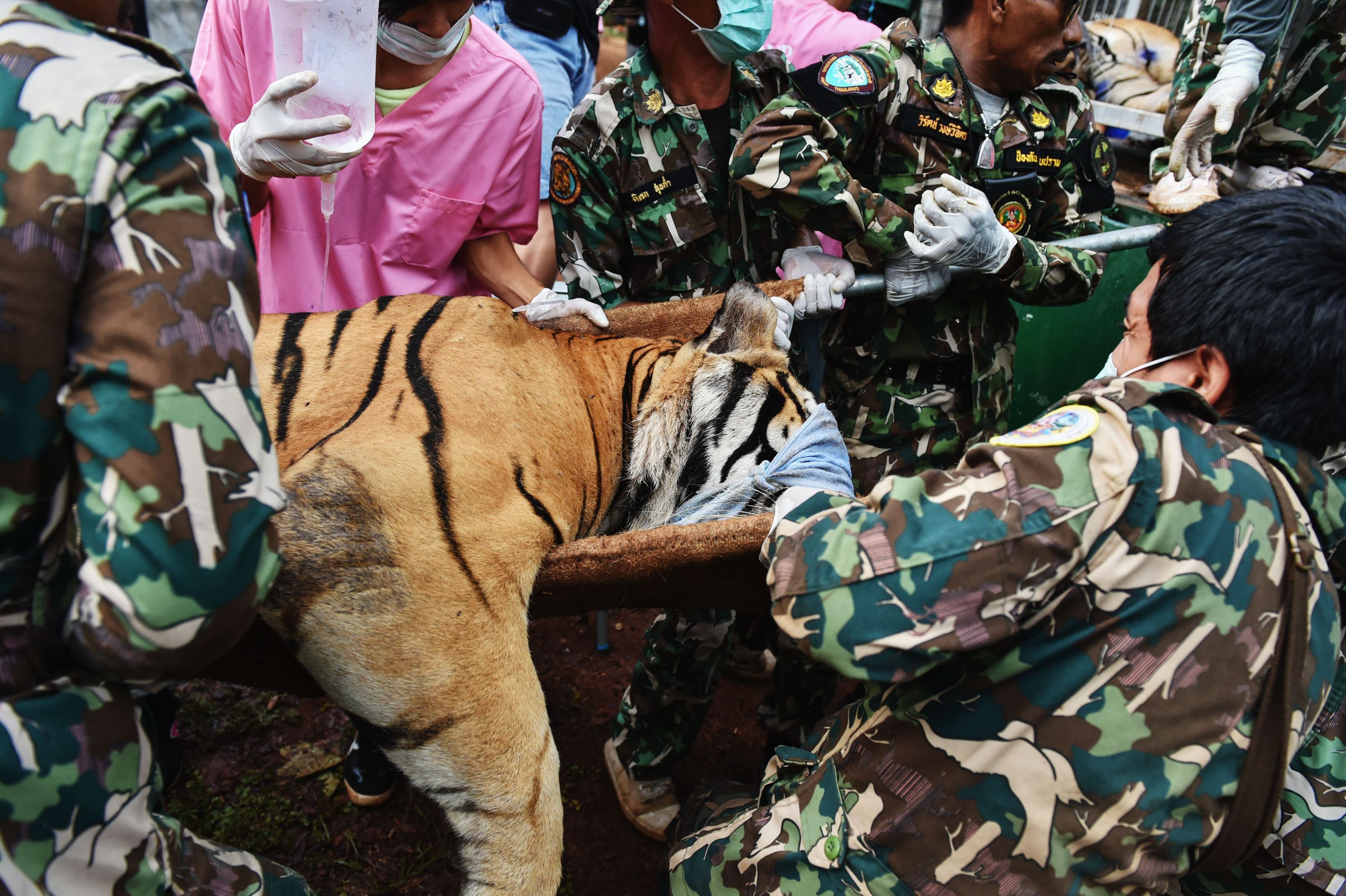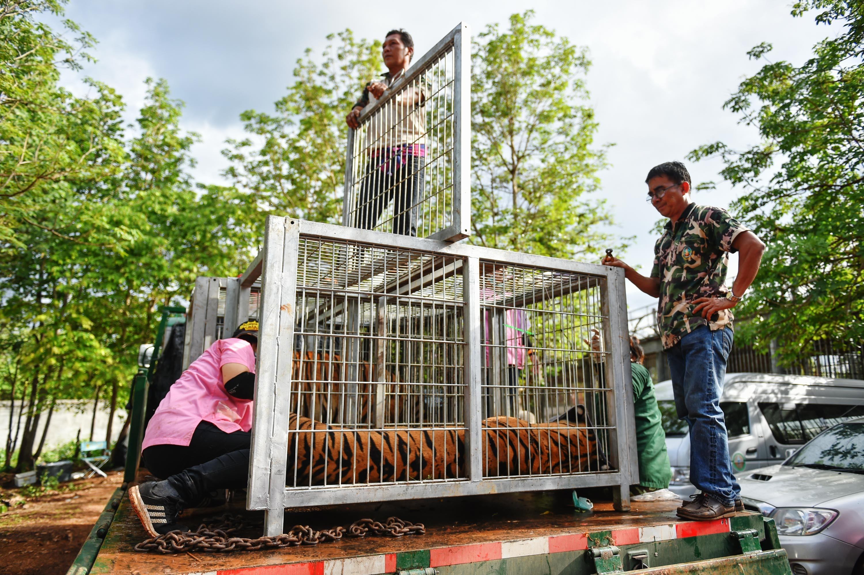 Specialiştii în protecţia faunei sălbatice din Thailanda au început strămutarea tigrilor din renumitul templu budist, situat în provincia Kanchanaburi.