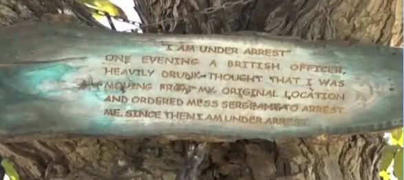 Povestea arborelui neobişnuit începe în anul 1898, când un ofiţer britanic pe nume James Squid s-a îmbătat şi a crezut că pomul îl atacă. În acel moment, militarul a ordonat subalternilor săi să aresteze copacul şi să îl înlănţuiască. Chiar şi acum, după mai bine de 100 de ani de la acel moment, pomul se află încă în lanţuri.