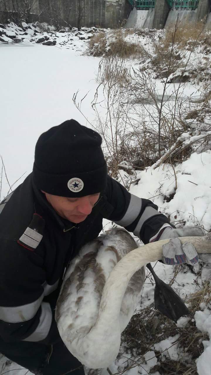 Pompierii piteşteni au reuşit, marţi după-amiază, la temperaturi de minus 10 de grade Celsius, să salveze un pui de lebădă, care se afla captiv în apa îngheţată a barajului Bascov.