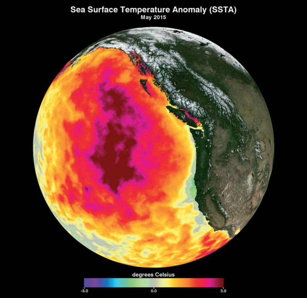 În aprilie 2015, aceste efecte au putut fi văzute şi în mediul terestru, cu o serie de evenimente meteorologice ciudate în Statele Unite. De asemenea, creşterea temeperaturii a dus la o explozie de alge toxice care se întind pe toată lungimea coastei de vest a Statelor Unite. Cercetătorii care au studiat aceste evenimente nu puteau spune multe, ecologul Jamie Jahncke a dezvăluit: „nu pot oferi o explicaţie a ceea ce se întâmplă acum”.