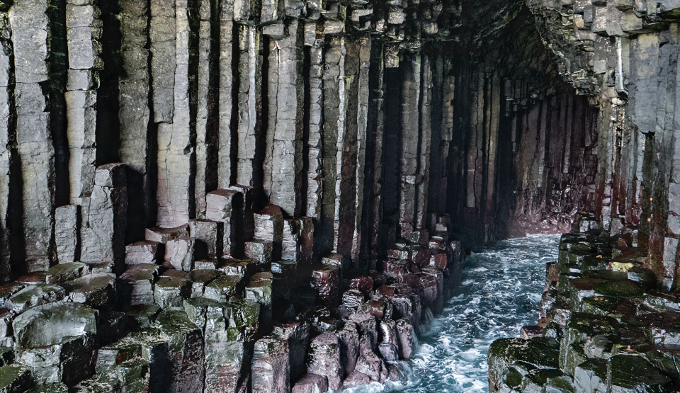 Fingal’s Cave a fost formată de curgerea lavei acum 60 de milioane de ani, unde roca topită a fost ejectată prin stratul de calcar, formând o structură care cerea o explicaţie mitică.