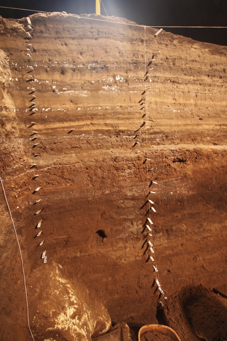 Odată cu trecerea timpului, s-au format concavităţi în calcar care au conectat peşterile cu suprafaţa. Nisipul şi solul au fost transportate în aceste intrări ale peşterii cu ajutorul apei şi al vânturilor, formând depozite stratificate (imaginea de mai jos) care se întind pe cel puţin ultimii 500.000 de ani din perioada cuaternară (2,6 milioane de ani – prezent).