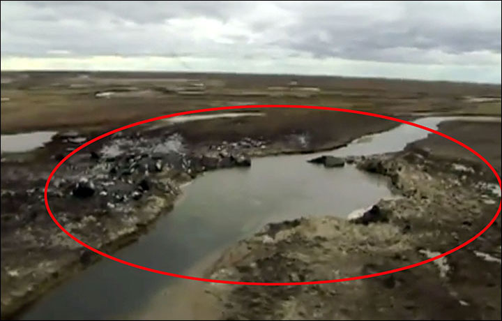 O explozie puternică şi asurzitoare a avut loc luna trecută în Peninsula Yamal. Permafrostul din Siberia se dezgheaţă din cauza încălzirii globale şi eliberează gaz metan captiv de mii de ani, care explodează puternic şi formează cratere adânci, scrie Gândul.