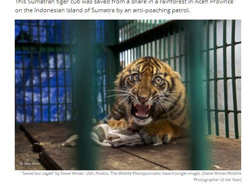 Acest pui de tigru a fost salvat dintr-o capcană amplasată în pădurea tropicală din provincia Aceh.
