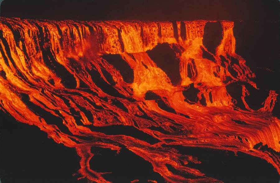 Însă una dintre cele mai spectaculoase erupţii ale vulcanului Kīlauea a avut loc pe 5 august, acelaşi an, când s-au format ”cascade de lavă” de peste 100 de metri.