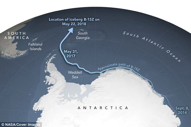 Ultimele imagini furnizate de Staţia Spaţială Internaţională dezvăluie că blocul de gheaţă de 11.000 de kilometri pătraţi se îndreaptă către nordul Georgiei de Sud. Mail Online notează că, în prezent, aisbergul se îndreaptă către apele calde din Oceanul Atlantic. NASA consideră că acest lucru poate duce la dispariţia lui.