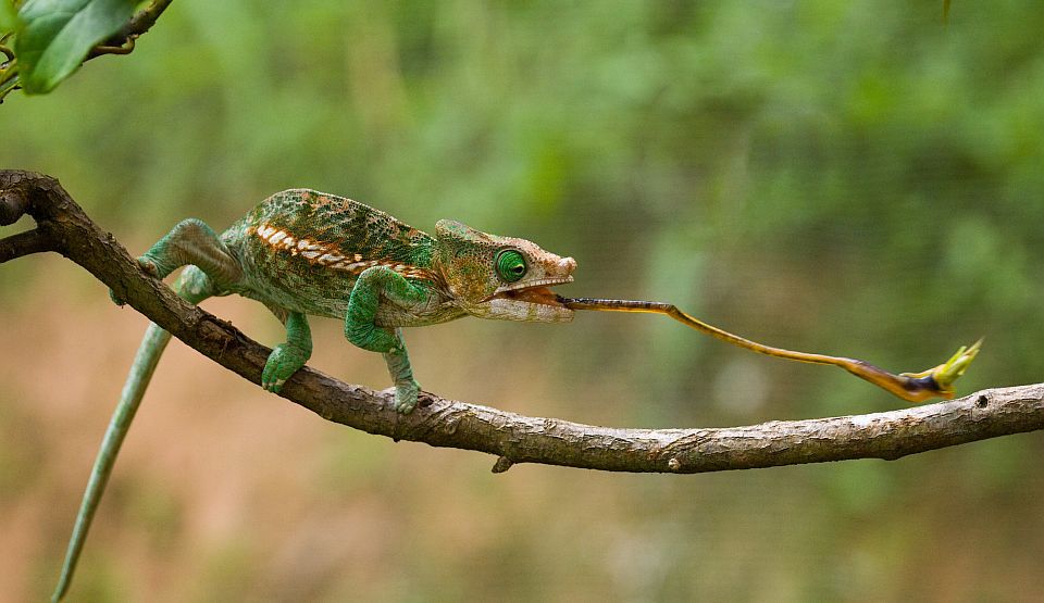 7. Limba unui cameleon are cel puţin lungimea corpului lui, dar poate apuca prada într-o fracţiune de secundă.