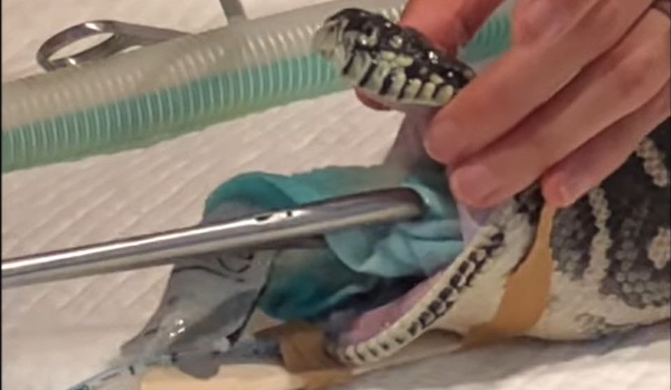 Momentul spectaculos în care un piton care înghiţise un prosop de plajă este salvat – VIDEO