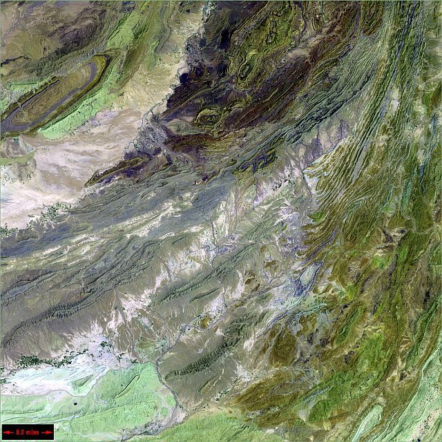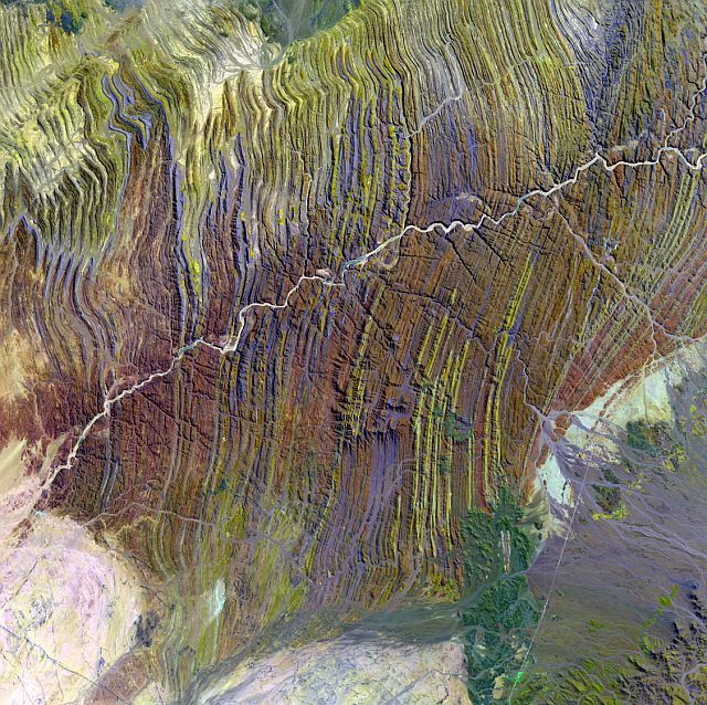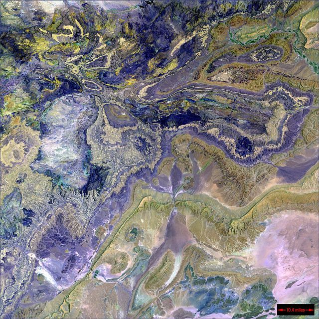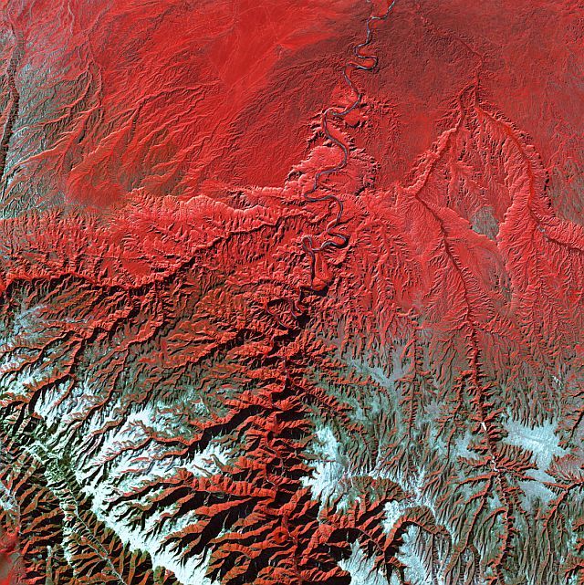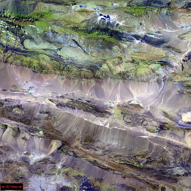„Evantai” aluvial, situat la granita muntilor Kunlun si