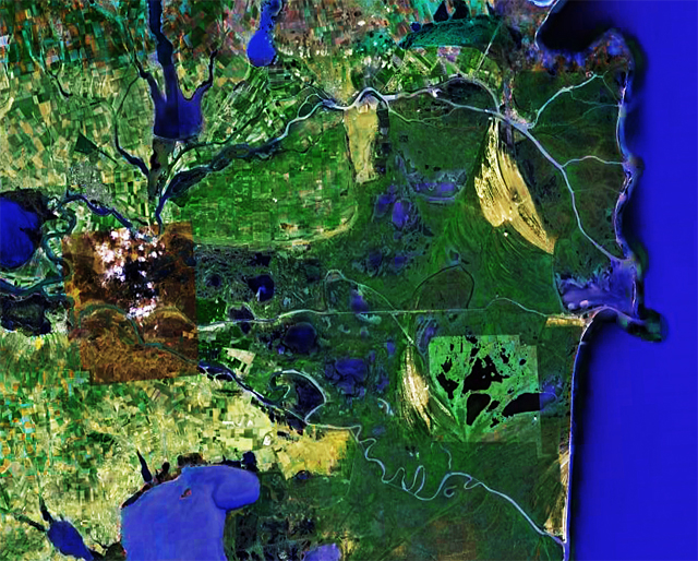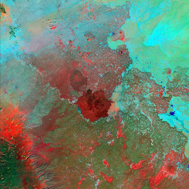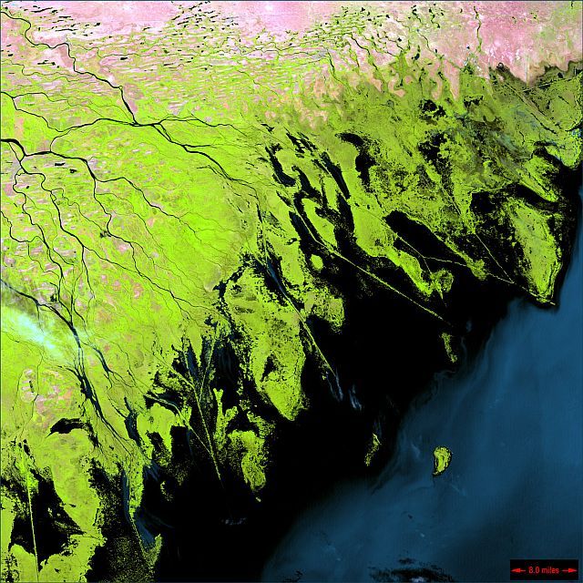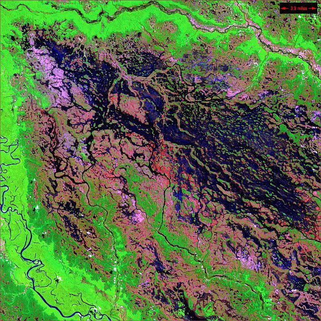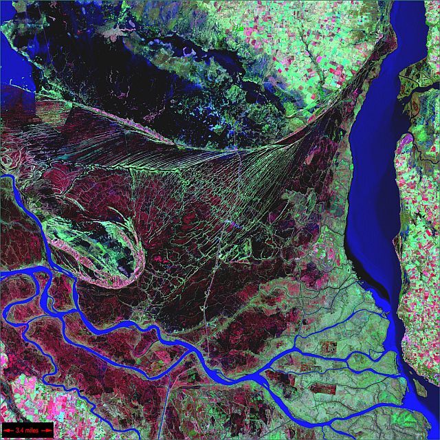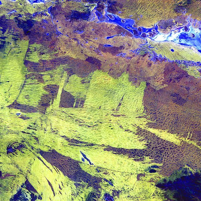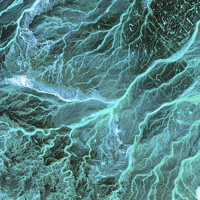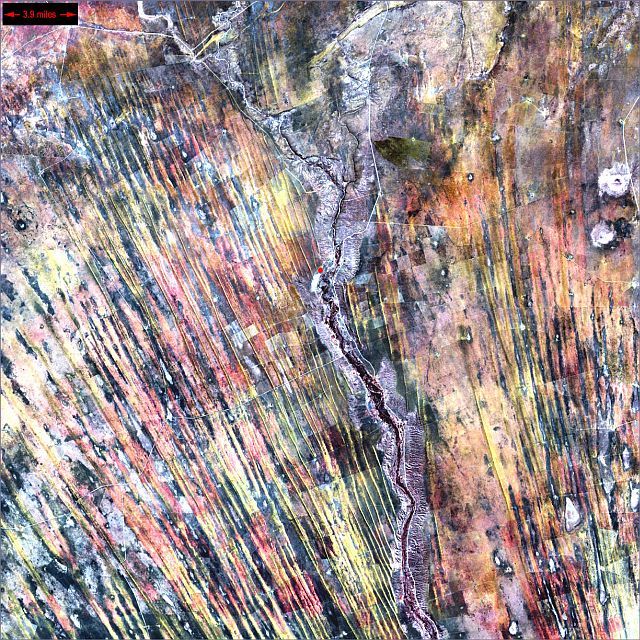 Desertul Kalahari, Namibia, presarat cu fasii „verzi”,