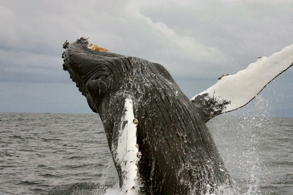 Balenă cu cocoaşa (Megaptera novaeangliae) migrează vara spre apele polare şi iarna spre cele tropicale.