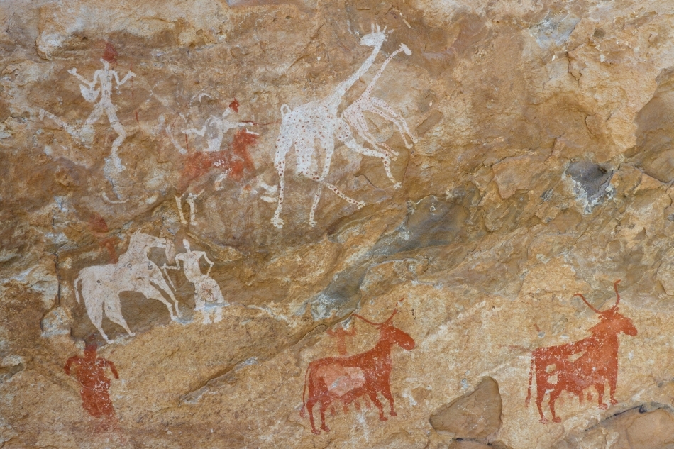 Mostrele de artă rupestră păstrate până azi, cum sunt faimoasele fresce de la Tassili n’Ajjer (Algeria) sau cele de la Akakus (Libia) arată că în acele zone – azi aflate în plin deşert arid şi fierbinte – trăiau astfel de animale: unele dintre ele pot fi cu uşurinţă recunoscute în reprezentările de pe suprafaţa stâncilor.