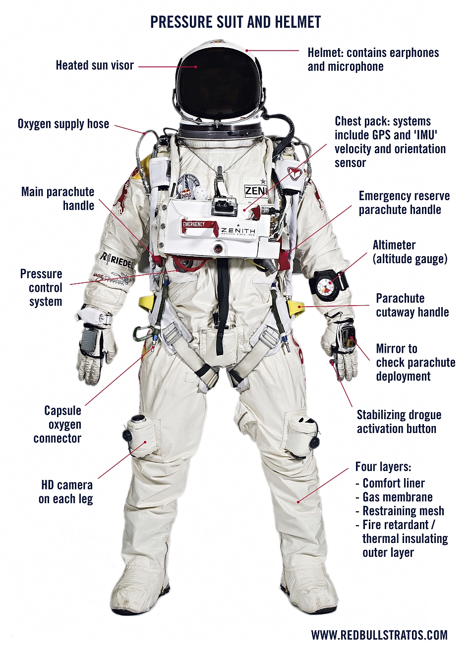 În ultimii cinci ani, inginerii, doctorii şi toţi ceilalţi tehnicieni ce formează echipa Red Bull Stratos au analizat toate riscurile la care se supune curajosul austriac. Altitudinea de la care Felix intenţionează să sară, 36.500 de metri deasupra nivelului mării, este de trei ori mai mare decât cea de croazieră a unui avion de linie. Presiunea atmosferică la acea înălţime reprezintă doar 1% din cea de la sol.