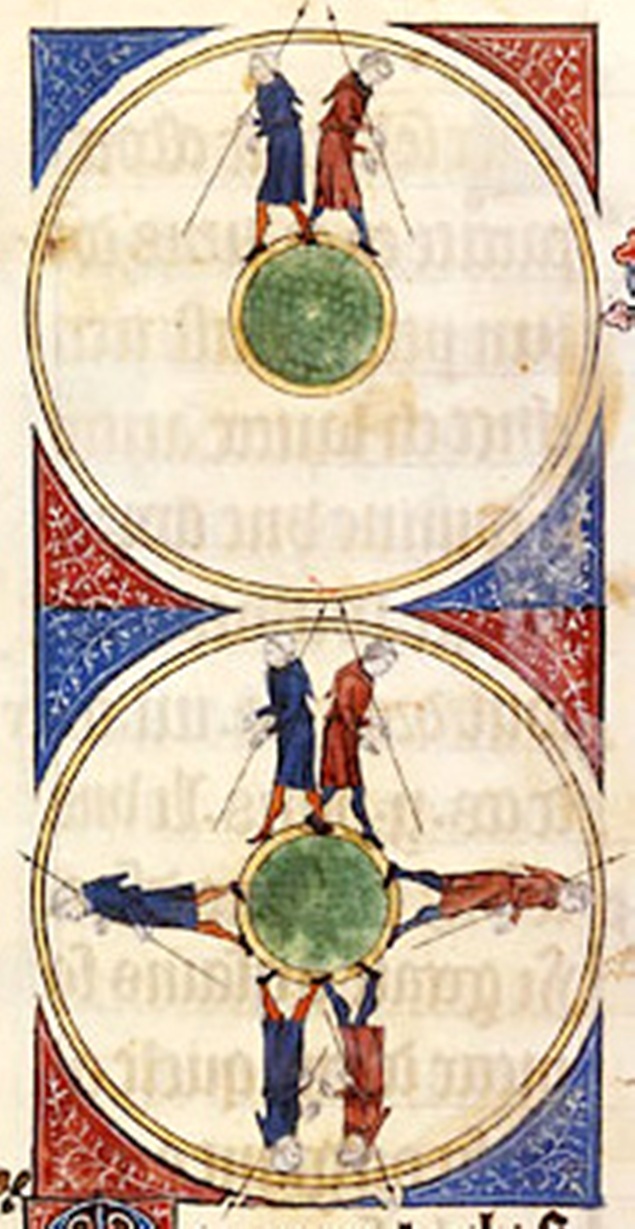 Dar lupta de idei a continuat şi ea. În primele secole ale erei noastre, teologii creştini aveau vederi împărţite: unii erau convinşi de sfericitatea Pământului, în vreme ce alţii, intepretând literal Scripturile, şi-l imaginau plat, plutind pe ape, întreg ansamblul – Pământ şi ape – fiind adăpostit sub firmament.