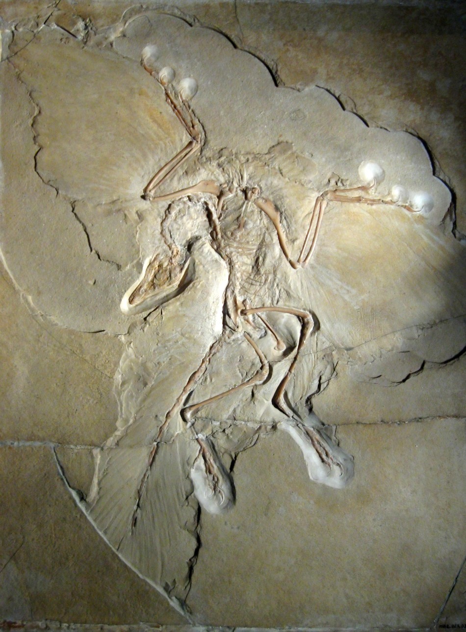 Să facem, aşadar, cunoştinţă cu Archaeopteryx litographica – pe scurt, Archaeopteryx – o creatură ce prezintă un amestec de trăsături aviene şi reptiliene, oferind, prin urmare, o imagine a evoluţiei care a dus de la theropode la păsări. Prima fosilă a acestei specii a fost descoperită în anul 1861 la Solnhofen, în Bavaria (sudul Germaniei), sub forma unei singure pene. În acelaşi an, a fost descoperit, în calcarele jurasice, şi un schelet complet. Excepţional de bine păstrat, el constituie şi acum un material de bază pentru studierea acestor creaturi şi a probelmaticii zborului la păsări. Ulterior au mai fost descoperite alte 10 exemplare, iar cercetările asupra lor, cu tehnici din ce în ce mai performante, evidenţiază mereu alte şi alte particularităţi care  confirmă ori infirmă ipotezele legate de apariţia zborului şi vor duce, în cele din urmă, la descifrarea acestui mister al evoluţiei.