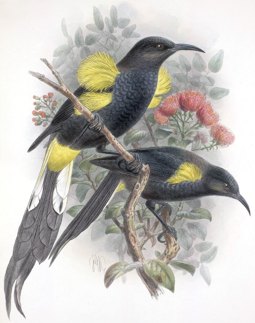 -Pasărea Moho trăia în Hawaii, unde a fost vânată până la dispariţie, în 1934.