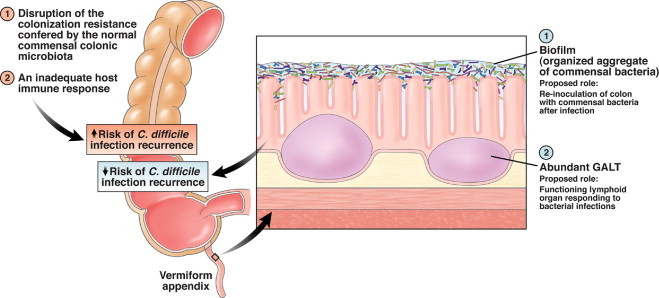Cercetătorii cred că în apendice se găsesc mai multe limfocite care combat C. difficile şi alte infecţii bacteriene, astfel că eliminarea sa face ca reacţia sistemului imunitar să fie mai slabă, şi intestinul să fie mai predispus la infectarea repetată.