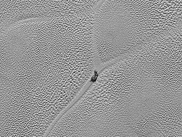 Experţii NASA susţin că obiectul misterios care seamănă cu un melc este, cel mai probabil, un bloc uriaş de apă îngheţată care pluteşte în azot solid foarte dens. De asemenea, sunt vizibile mii de gropi în suprafaţă, despre care oamenii de ştiinţă susţin că ar putea fi formate prin sublimare.