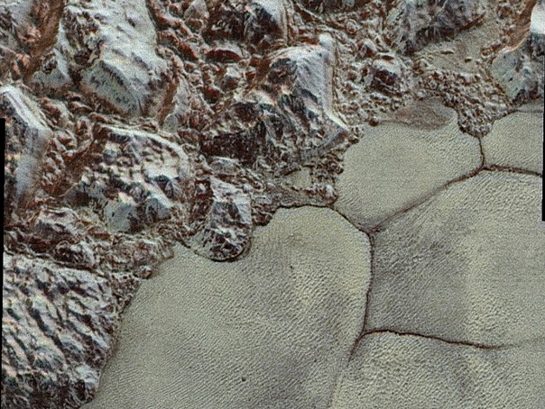 Fotografiile au fost transmise de New Horizons pe data de 24 decembrie şi prezintă „imagini de mare rezoluţie cu suprafaţa planetei. În acestea apare şi câmpia de gheaţă care formează partea stângă a lui Pluto şi care seamănă cu o inimă.