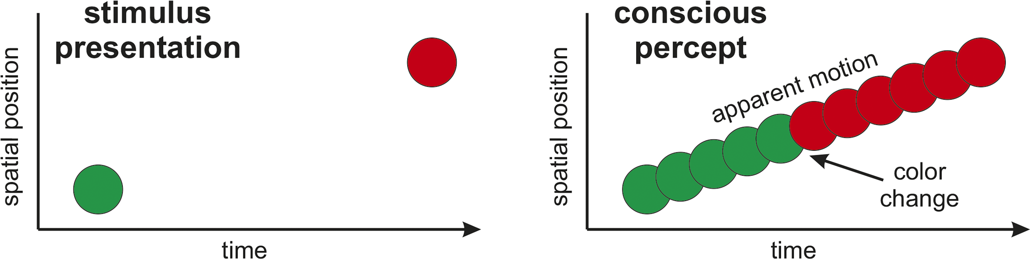 În modelul lor, „feliile de timp”, care constă în prelucrarea inconştientă a stimulilor, durează până la 400 de milisecunde (ms) şi sunt urmate imediat de percepţia conştientă a evenimentelor.