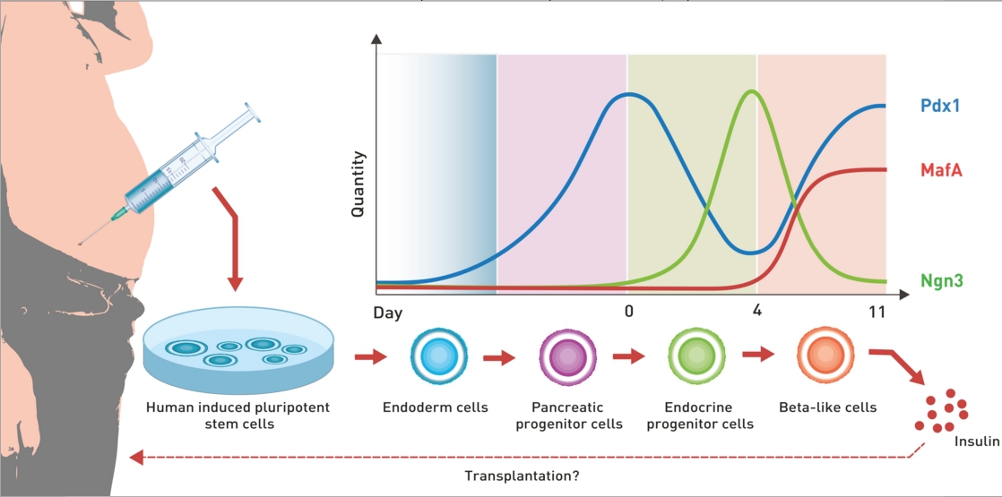 Echipa de cercetători a fost condusă de Martin Fussenegger, profesor de Bioinginerie şi Biotehnologie la Departamentul din Basel de Biosisteme Ştiinţifice şi Inginerie a Universităţii ETH Zurich. Echipa a efectuat un experiment pe care mulţi specialişti l-au considerat până acum imposibil: ei au extras celule stem din ţesutul adipos de la o persoană de 50 de ani, pentru a le testa şi reprograma genetic, făcându-le să se maturizeze în celulele beta funcţionale.