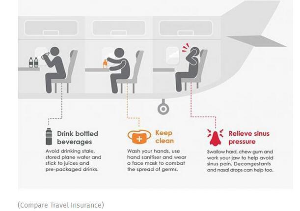 Compare Travel Insurance oferă şi câteva sfaturi pentru a reduce disconfortul provocat de schimbările de presiune, înghesuială şi aerul recirculat.