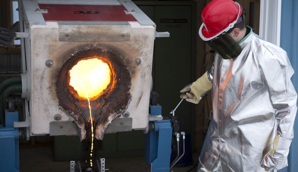 Cercetătorul Ingo Sonders manevrând instalaţia de turnare a rocii topite (Foto:popsci.com/Douglas Levere)