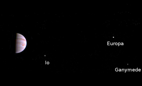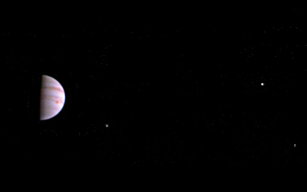 Prima imagine a fost suprinsă pe 10 iulie, atunci când sonda spaţială se afla la o distanţă de 4,3 milioane de kilometri de Jupiter, la începutul unei curse de 53,5 zile în jurul planetei-gigant.