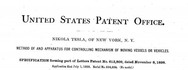 Matthew Schroyer a publicat un fragment din brevetul lui Tesla pe pagina sa de Twitter. În paginile documentului, datat 1 iulie 1898, pot fi observate detaliile proiectului unor maşinării fără pilot care urmau să fie folosite în domeniile comunicaţiilor, explorării ştiinţifice şi militar. Conform însemnărilor inventatorului, dispozitivele urmau să fie controlate de la distanţă.