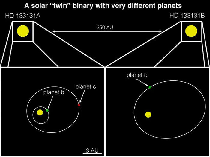 O echipă de la Carnegie Institution for Science, Washington D.C., a descoperit o nouă stea binară ale cărei componente, stelele HD 133131A şi HD 133131B se află la cea mai apropiată distanţă descoperită până acum în cazul unui astfel de sistem. Cele două corpuri cosmice sunt separate de un interval de doar 360 de unităţi astronomice, adică cu 640 UA mai puţin decât în cazul minimului precedent.