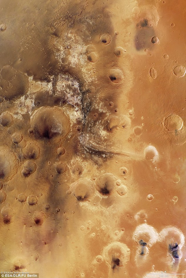 Structurile cu tonuri mai deschise de culoare sunt realizate din minerale argiloase, fapt ce indică prezenţa apei lichide. Conform agenţiei spaţiale, rămăşiţele de cenuşă vulcanică sub forma unei roci negre pot proteja microbii antici din argilă. Pentru a crea această imagine, cercetătorii au combinat nouă imagini realizate de camera de înaltă rezoluţie a sondei Express.