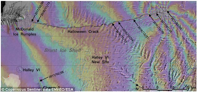 Pentru monitorizarea crăpăturii au fost utilizate informaţii de la sateliţii Sentinel-1 şi Sentinel-2, precum şi din partea companiei Enveo. În noiembrie şi decembrie fisura a crescut cu 600 de metri pe zi. Deşi baza de cercetare a fost mutată din cauza fenomenului, staţia era concepută pentru a fi relocată în cazul în care gheaţa devenea periculoasă.
