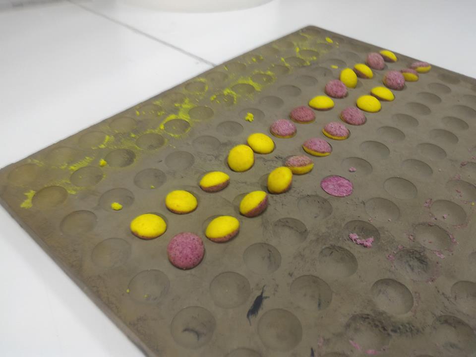 ”Pudra de afine şi cea de turmeric se pun în forme după care jumătăţile se lipesc împreună şi rezultă un drajeu în două culori, roz şi galben. Cred că este posibil să găsesc producători dispuşi să introducă această reţetă în procesele de fabricaţie. Oricum, voi iniţia demersuri pentru brevetarea drajeurilor”, a spus Ioana Oprea.