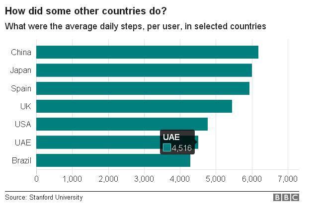 Oamenii de ştiinţă americani au cules date la scară planetară cu ajutorul smartphone-urilor oamenilor pentru a vedea cât suntem de activi, cu adevărat. Analiza celor de Universitatea Stanford a revelat că numărul mediu de paşi pe care o persoană îi face zilnic este de 4.961. Locuitorii din Hong Kong sunt în topul clasamentului drept cei mai activi oameni, cu 6.880 de paşi zilnic, iar la coada topului se situează Indonezia, cu 3.513 paşi.