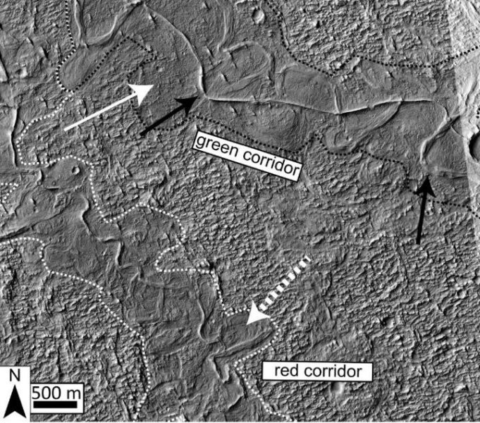 Aceste structuri sunt observabile cu ajutorul sateliţilor pentru că au trecut printr-un proces numit „inversiune topografică”, unde canalele care erau mai joase acum sunt înălţate faţă de relieful din jur (imaginea de mai jos).