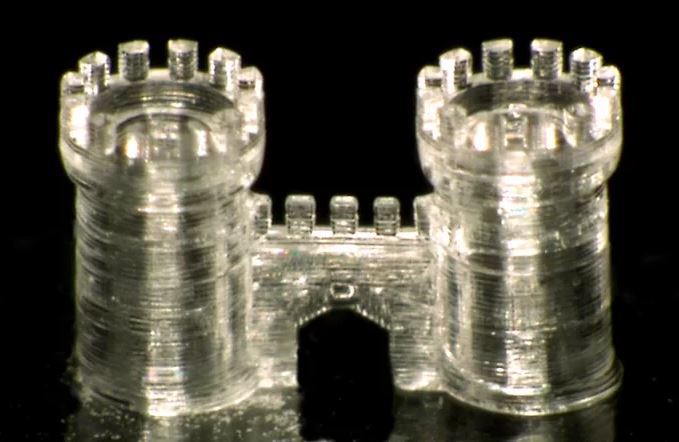 Până în prezent, sticla a reprezentat unul dintre materialele cele mai greu de utilizat pentru imprimarea obiectelor 3D deoarece în cadrul procesului sticla trebuie să fie încălzită la o temperatură ridicată de peste 1.000 de grade Celsius. Însă, prin intermediul imprimantelor 3D industriale şi a laserelor extrem de puternice, specialiştii au reuşit să creeze un castel din sticlă. În primă fază, specialiştii au utilizat ”sticlă lichidă”, un amestec de siliciu dispersat într-o soluţie acrilică. Obiectul a fost apoi amplasat în lumina UV care a ajutat la întărirea acestuia.  Apoi este supus unui nou tratament termic de 1.300 de grade Celsius prin care nanoparticulele se combină şi formează structura din sticlă transparentă.