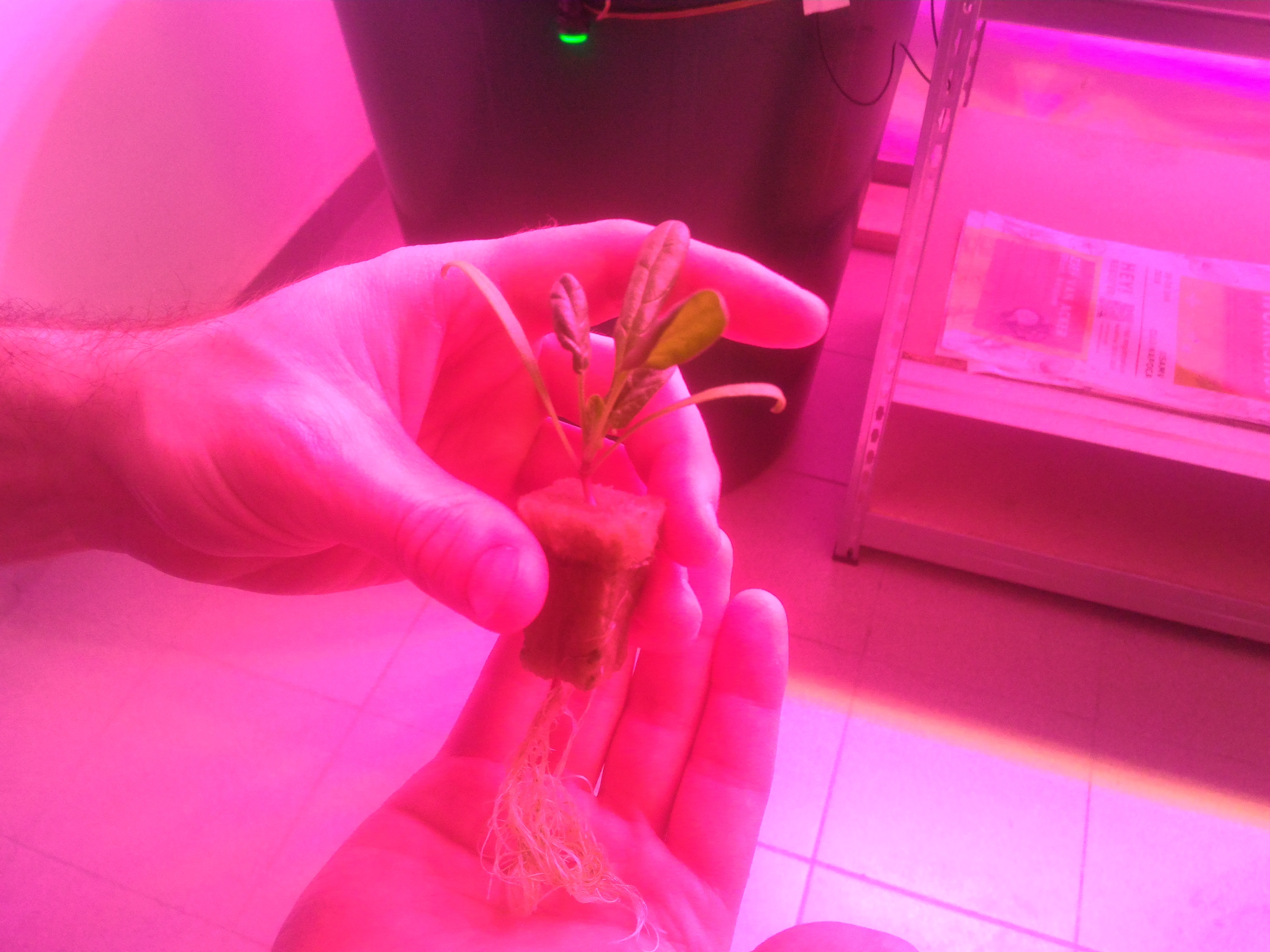 ”Folosim foarte mulţi senzori legaţi în sistem care interacţionează şi trimit informaţii despre apă, despre peşti, senzori de temperatură şi umiditate, iar în funcţie de umiditate pornesc ventilatoarele instalate. Încercăm să descoperim cum se influenţează creşterea recoltei şi gustul plantelor. Folosim LED-uri cu un spectru mic de culoare, albastru şi roşu, folosite de plante pentru fotosinteză, este o combinaţie de nutrienţi, apă şi lumină prin care încercăm să îmbunătăţim calitatea plantelor”, a spus acesta.