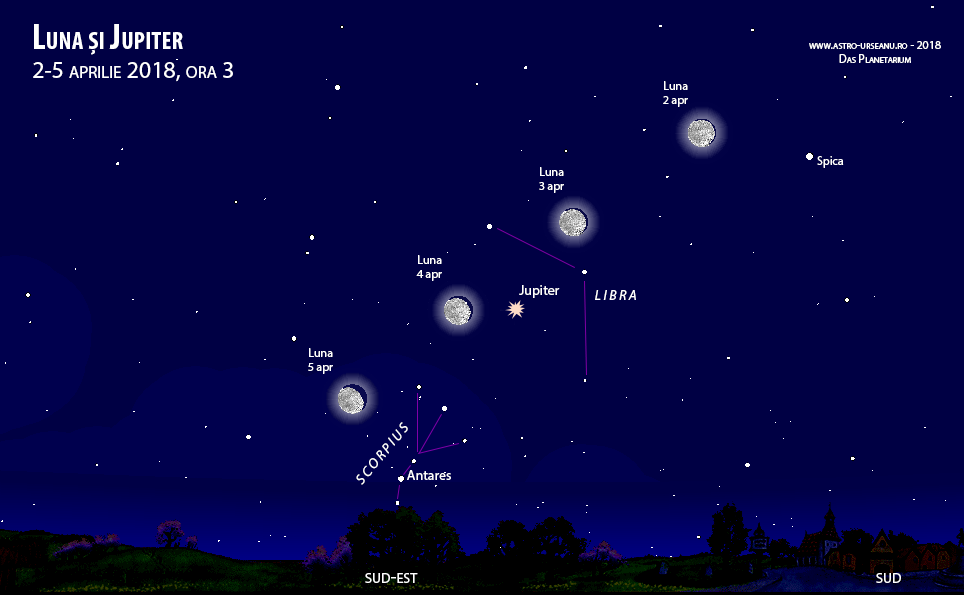 2-5 aprilie – Lunii i se alătură gigantul gazos Jupiter