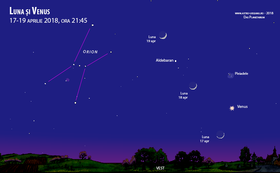 Venus, care este oricum cea mai vizibilă planetă, se va afla în apropierea Lunii pe partea de vest a cerului, începând cu ora 20:30. Spectacolul ceresc poate fi admirat timp de o oră. Veţi putea vedea o stea foarte strălucitoare, care nu are o lumină intermitentă (de aceea poartă şi numele de Luceafărul).