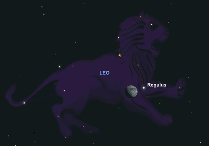 Cea mai strălucitoare stea din constelaţia Leului, Regulus, se va putea vedea lângă Lună. Cei care doresc să observe fenomenul se pot uita sus pe cerul sudic unde pot vedea constelaţia care are o formă de semnul întrebării invers.