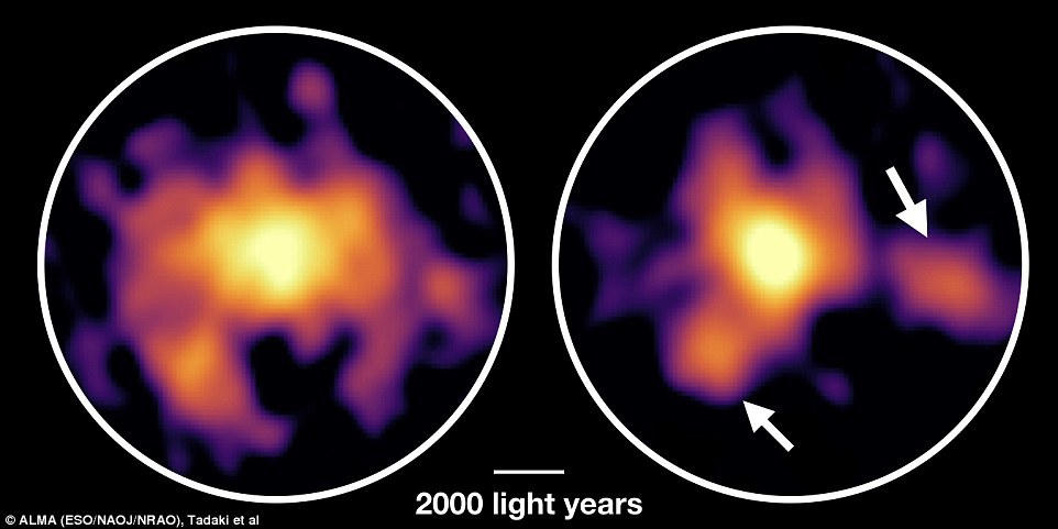 În cadrul noului studiu cercetătorii au studiat norul de molecule din AzTEC-1 cu ajutorul instrumentelor de înaltă rezoluţie şi extrem de sensibile ale observatorului ALMA. Prin intermediul datelor au putut realizat o hartă a distribuirii şi mişcării gazelor. „Am descoperit că există doi nori diferiţi aflaţi la câteva sute de ani lumină de centru,” a afirmat coautorul studiului Ken-ichi Tadaki din cadrul Observatorului Astronomic Naţional din Japonia.