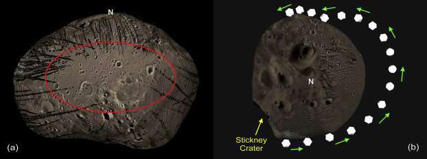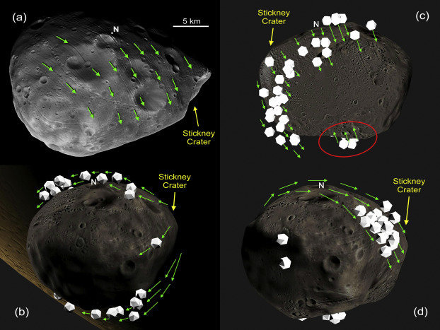 Simulările arată că datorită dimensiunii mici şi a gravitaţiei slabe a lui Phobos, rocile au continuat să se rostogolească o distanţă semnificativă pentru a reveni în partea opusă a satelitului, făcând o călătorie în jurul lui Phobos.