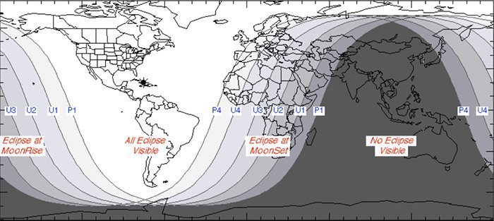 Cel mai bine se va vedea în Americi, aşa cum arată imaginea de mai jos, în seara/noaptea de 20 ianuarie. În Europa, eclipsa se va vedea la apusul Lunii, scrie Science Alert.