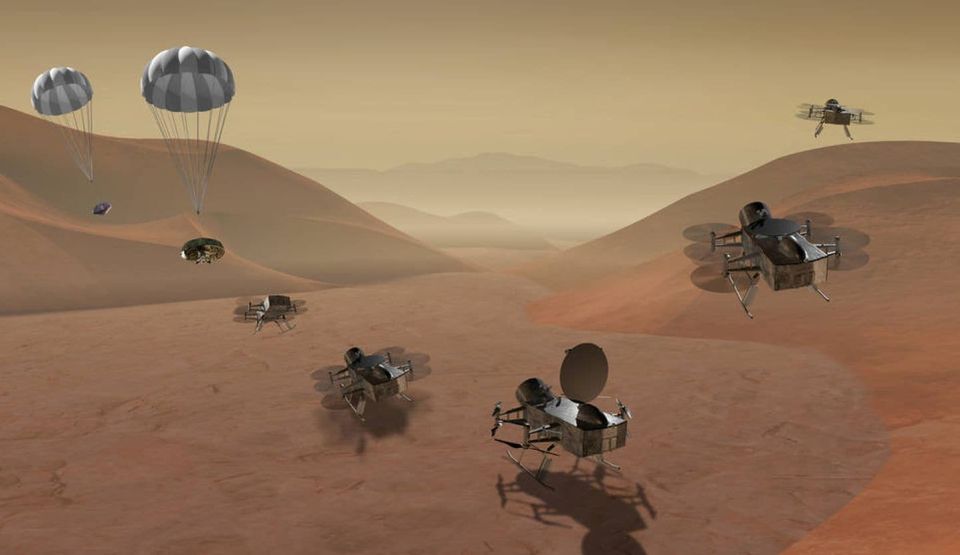 Misiunea Dragonfly implică lansarea, în 2026, a unui vehicul spaţial similar unei drone mai mari, care ar trebui să ajungă pe Titan în 2034.