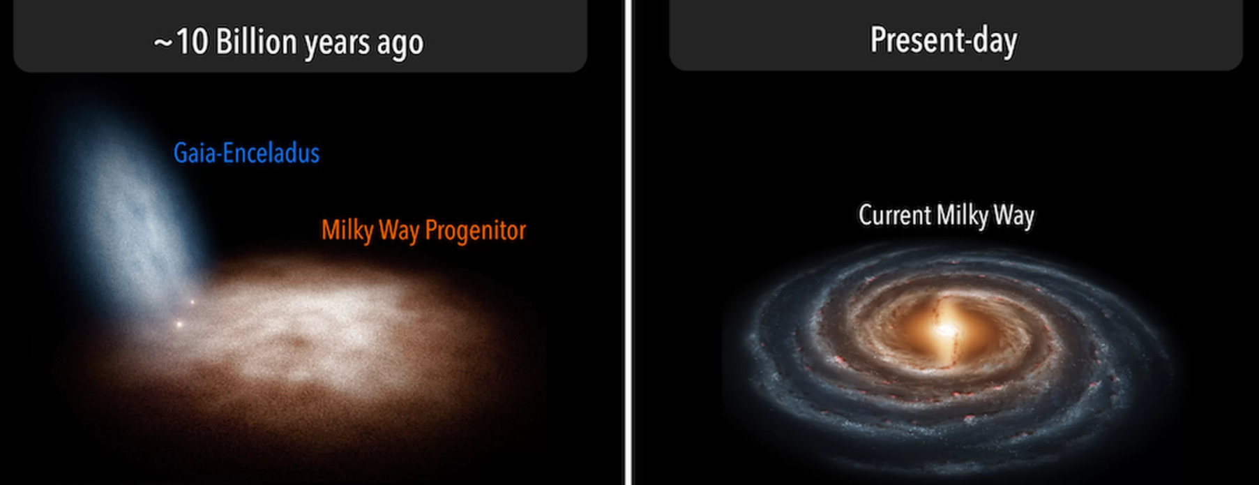 Cercetătorii au aflat că cele două galaxii: Calea Lactee şi Gaia-Enceladus s-au format în urmă cu 13 miliarde de ani şi au început să producă stele pentru trei miliarde de ani înainte de a se ciocni. Acest proces a fost unul lent, care s-a desfăşurat de-a lungul a mai multe milioane de ani.