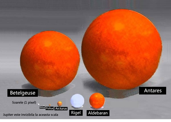 In prezent, stiinta si tehnologia ne dezvaluie noi si noi lumi, nebanuite pana de curand, sori imensi care se lupta cu intunericul in alte colturi intunecate ale galaxiei. Vi se pare ca Pamantul este urias in comparatie cu Mercur sau cu Pluto? Ce ati zice atunci de faptul ca Soarele noastru este doar un punct pe langa stelele rosii supergigantice ascunse de praful solar in imensitatea galaxiei sau de faptul ca daca doar una dintre ele ar fi situata in centrul sistemului nostru solar ar avea o dimensiune suficient de mare pentru a inghiti toate planetele pana la Jupiter sau chiar Saturn?