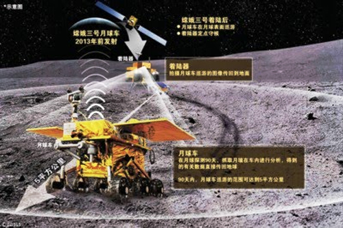 • Chang’e 3 este un rover chinez, lunar de aceasta data, care va fi lansat in 2013. Va reprezenta primul vehicul lunar al Chinei, parte a celei de-a doua faze a Programului Chinez de Explorare a Lunii, intreprins de Administratia Spatiala Nationala Chineza.